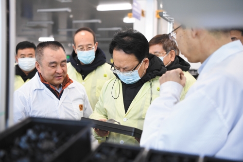 ?。保苍拢谷?,吉林省委書記景俊海到中國兵器工業(yè)集團(tuán)東北工業(yè)集團(tuán)有限公司,就深入貫徹黨的十九屆五中全會精神和習(xí)近平總書記視察吉林重要講話重要指示精神,全面落實(shí)省委十一屆八次全會精神,推動(dòng)企業(yè)創(chuàng)新發(fā)展等情況進(jìn)行調(diào)研。吉林省委常委、副省長吳靖平,吉林省委常委、省委秘書長胡家福,吉林省委常委、長春市委書記王凱一同調(diào)研。  圖為景俊海等在東北工業(yè)集團(tuán)生產(chǎn)現(xiàn)場調(diào)研