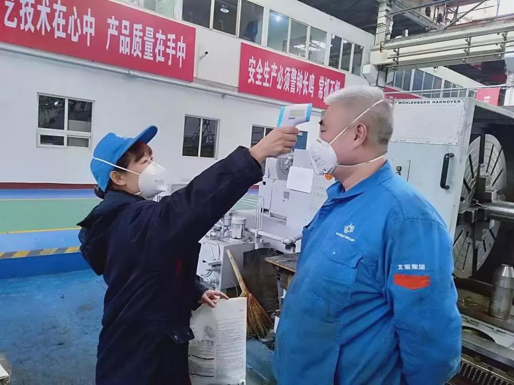 北重集團為在崗工作人員準(zhǔn)備了洗手液、口罩、噴壺等消毒防護器材,對進入廠房人員嚴格登記和測量體溫,對工作人員一日四次檢測體溫并進行記錄,在做好疫情防控的同時保證生產(chǎn)。