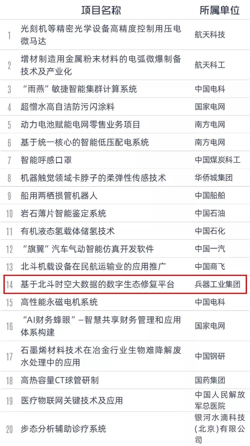 為落實(shí)黨中央、國務(wù)院關(guān)于加快實(shí)施創(chuàng)新驅(qū)動(dòng)發(fā)展戰(zhàn)略、深入推進(jìn)大眾創(chuàng)業(yè)萬眾創(chuàng)新的決策部署,加快推動(dòng)中央企業(yè)創(chuàng)新創(chuàng)業(yè)高質(zhì)量發(fā)展,國資委于2020年9月組織開展了第三屆中央企業(yè)熠星創(chuàng)新創(chuàng)意大賽。 大賽啟動(dòng)以來,各中央企業(yè)積極組織參加,社會創(chuàng)新團(tuán)體踴躍參與,共3340個(gè)項(xiàng)目、2.3萬余人報(bào)名參賽。通過項(xiàng)目初選和復(fù)選,共有516個(gè)項(xiàng)目面向社會進(jìn)行了投資路演和對接,吸引眾多投資機(jī)構(gòu)和知名企業(yè)參與,達(dá)成一批合作意向。 經(jīng)總決賽評選,共評選出一等獎(jiǎng)20項(xiàng)、二等獎(jiǎng)30項(xiàng)、三等獎(jiǎng)50項(xiàng)、優(yōu)秀獎(jiǎng)100項(xiàng),中國兵器工業(yè)集團(tuán)有限公司4個(gè)項(xiàng)目獲獎(jiǎng)并榮獲“優(yōu)秀組織單位”。 兵器工業(yè)集團(tuán)獲獎(jiǎng)項(xiàng)目 一等獎(jiǎng)(1個(gè)) 基于北斗時(shí)空大數(shù)據(jù)的數(shù)字生態(tài)修復(fù)平臺(創(chuàng)意類) 三等獎(jiǎng)(1個(gè)) 三合一北斗智能邊海防管控終端(創(chuàng)新類) 優(yōu)秀獎(jiǎng)(2個(gè)) 基于北斗的鐵路工程測量創(chuàng)新應(yīng)用(創(chuàng)意類) 公共交通一體化智慧監(jiān)測系統(tǒng)(創(chuàng)新類) 完整獲獎(jiǎng)名單 |