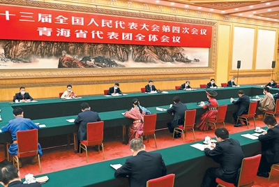 3月7日,中共中央總書記、國(guó)家主席、中央軍委主席習(xí)近平參加十三屆全國(guó)人大四次會(huì)議青海代表團(tuán)的審議。新華社記者 李濤攝