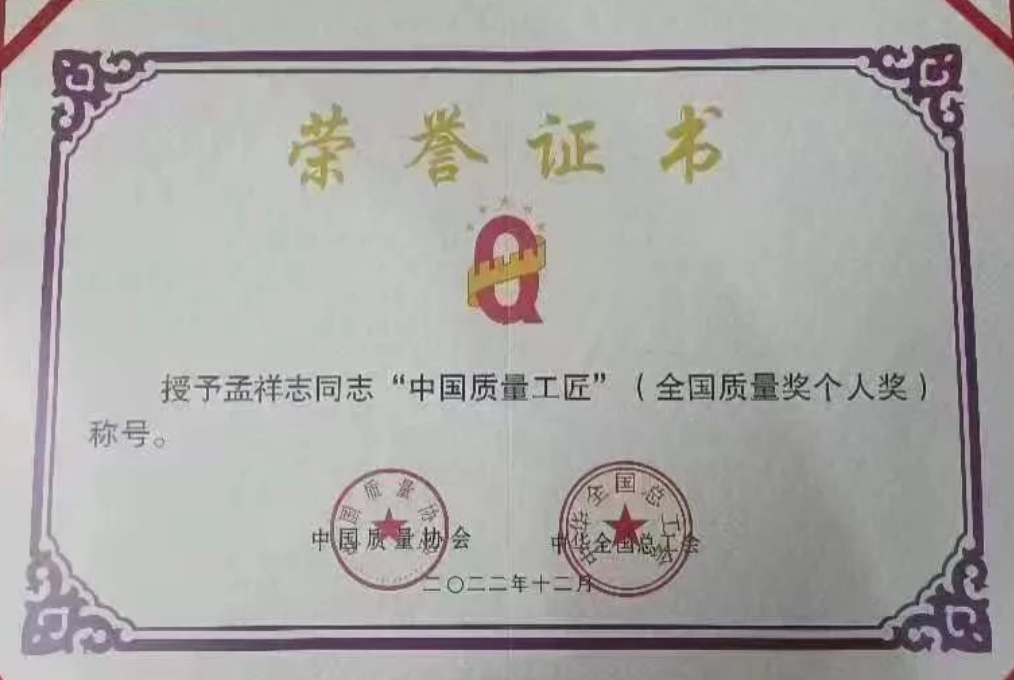 兵器工業(yè)集團(tuán)孟祥志榮獲“中國(guó)質(zhì)量工匠”稱號(hào) |